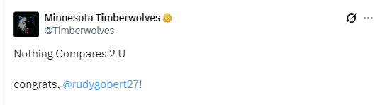 在戈贝尔完成里程碑后,森林狼队官方也晒出了戈贝尔10000板的海报,并发文向他表达了祝贺。森林狼队官方写道:“无与伦比,祝贺你,戈贝尔。”