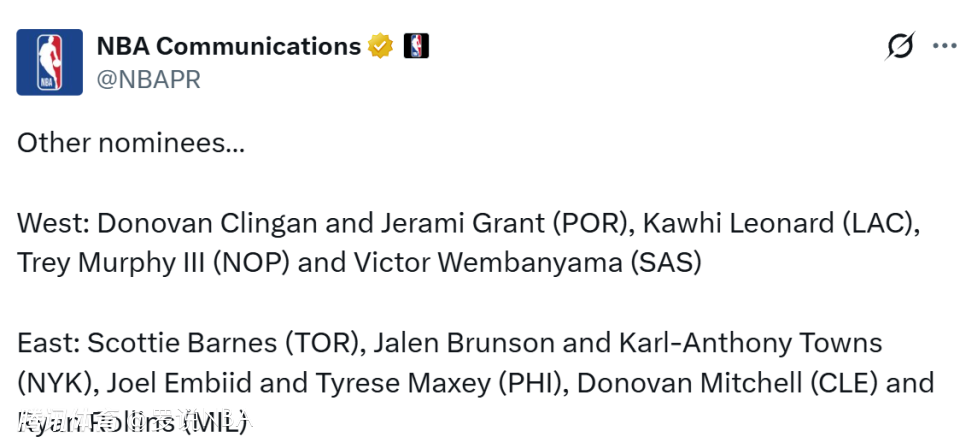 北京时间2月10日,NBA官方公布了第16周的周最佳球员,马刺的卡斯尔当选西部周最佳球员,这是卡斯尔生涯首次获得这一奖项。老鹰的约翰逊当选东部周最佳球员,这是约翰逊生涯第二次获此殊荣,两次都在本赛季。小卡、克林根、文班等人获得提名。