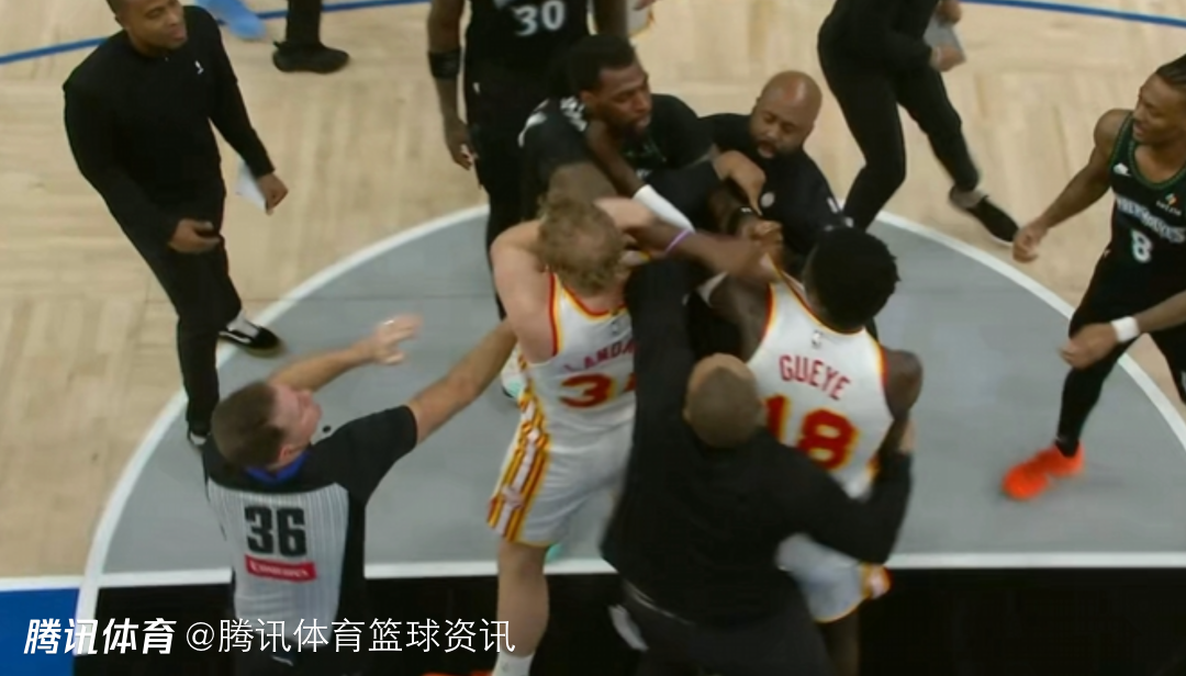 北京时间2月10日,NBA常规赛,老鹰对阵森林狼,比赛中,里德和古耶发生冲突,两人挥拳相向,随后被双双驱逐出场。