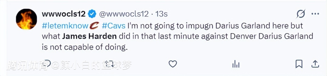 骑士媒体:我不会在这里诋毁加兰,但哈登在对阵掘金最后时刻所做的一切,加兰根本无法做到。