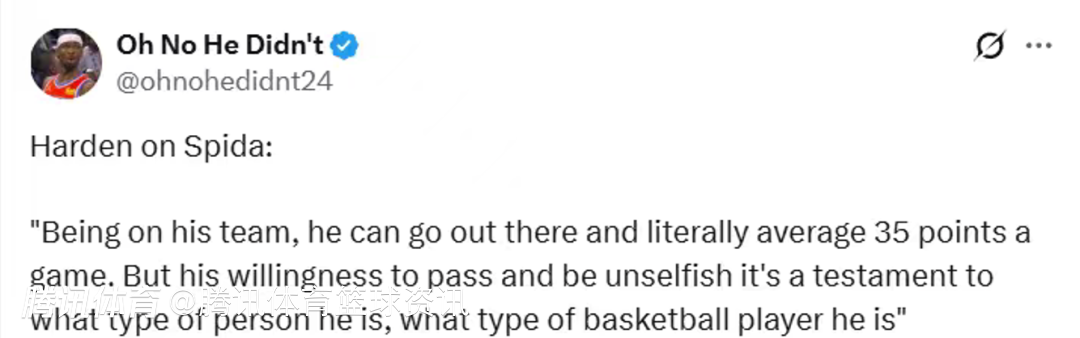 哈登在谈到米切尔时说道:“和他做队友,他完全有能力场均轰下35分。但他愿意传球、保持无私,这恰恰证明了他的人品,也证明了他是怎样的球员。”