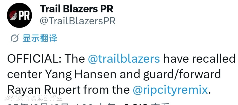 开拓者将在12月19日主场对阵国王,球队从发展联盟召回杨瀚森与吕佩尔可以理解,球队需要补充人手。