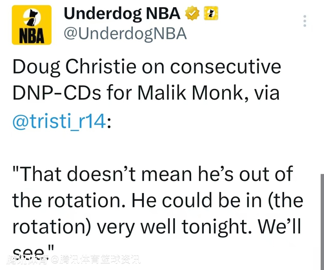 北京时间12月22日,NBA常规赛继续进行,国王对阵火箭。赛前,国王主帅克里斯蒂接受媒体采访,谈及此前连续两场被DNP的球员蒙克。