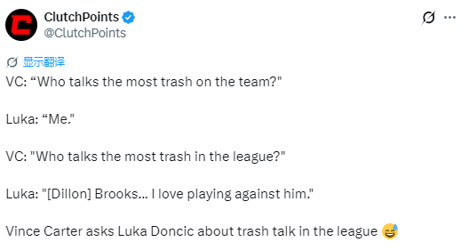而被问及全联盟谁垃圾话最多,东契奇则表示:“狄龙,我很喜欢和他对位。”