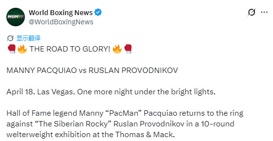 现年47岁、八个级别世界冠军、2025年入选国际拳击名人堂的帕奎奥表示:“每次比赛我都带着菲律宾的期望,祖国与全世界拳迷的支持一直激励着我。回到拉斯维加斯对我意义重大,我已经准备好为大家奉献一场精彩对决。”