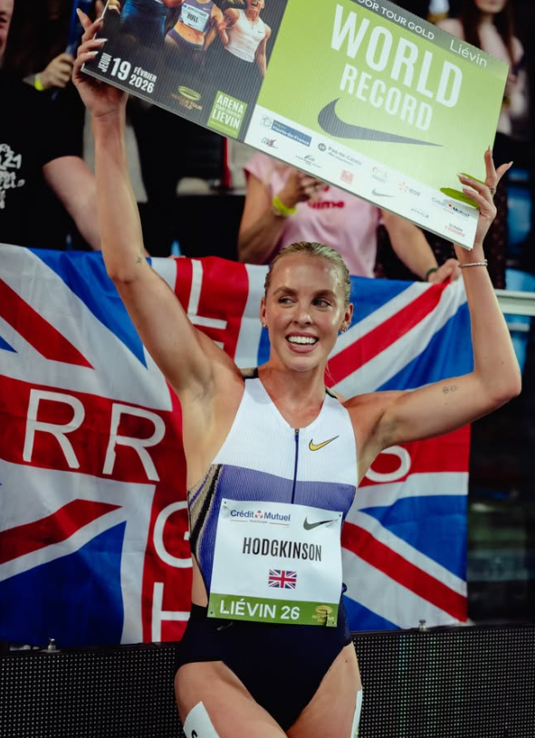 她就是在上周打破女子室内800米世界纪录的英国选手基莉-霍奇金森。室内800米的原世界纪录是2002年3月3日创造,而就在这一天出生的霍奇金森,将近24年后打破纪录。