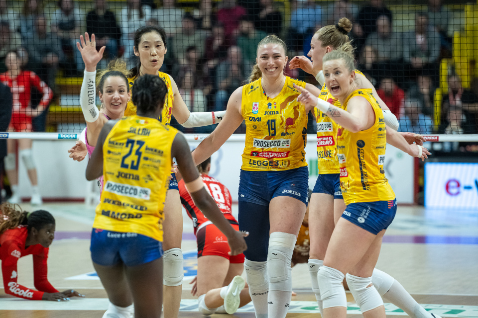 北京时间3月5日凌晨,2025-2026赛季意甲女排联赛季后赛1/4决赛第二回合较量全面展开。朱婷效力的卫冕冠军科内利亚诺客场3-0再挫布斯托阿西齐奥,主客场双杀对手后以总比分2-0获胜晋级4强,三局比分为25-16、25-17和25-15。科内利亚诺在半决赛将遭遇劲敌诺瓦拉。首发主打的朱婷12扣1拦拿下全队第二高分13分,她的队友、力夺17分的接应哈克再度荣膺得分王和单场MVP。