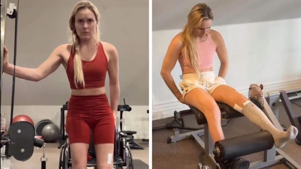 林赛-沃恩在自己的社媒配上了一段在健身房的训练视频,她已经离开轮椅,尝试用双腿站立,并进行了核心力量和上肢训练。沃恩在社媒写道:“这当然是一段艰难时期,但我心存感恩。我会继续努力,我唯一的目标就是恢复健康,一步一个脚印。”