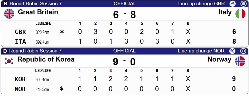 另外两场较量里,经过6-8意大利,韩国9-0挪威。