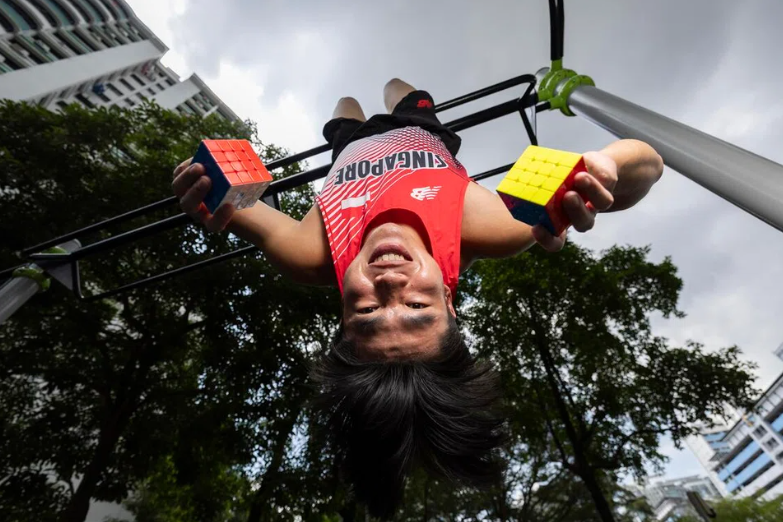 陈竑安在解魔方上,除了九项世界纪录之外,还保持了55项新加坡全国纪录,换到田径界,这是一个没法想象的纪录数。