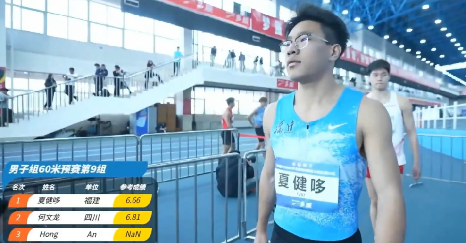 福建选手夏健哆打破广东选手包揽预赛前三格局,他以6秒66(6秒652)的成绩排名第三。
