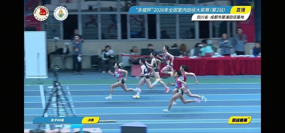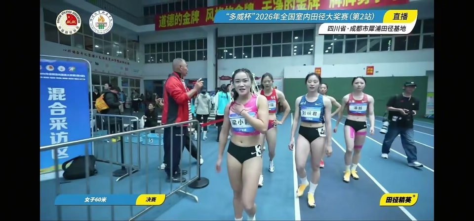 北京时间3月11日,2026年全国室内田径大奖赛(第2站)成都犀浦站女子60米决赛,即将29岁的老将梁小静伤愈复出上演王者归来,她以7秒26夺冠。这个成绩仅次于上一站陈妤颉在西安夺冠时跑出的7秒24,排名本赛季亚洲第二位。