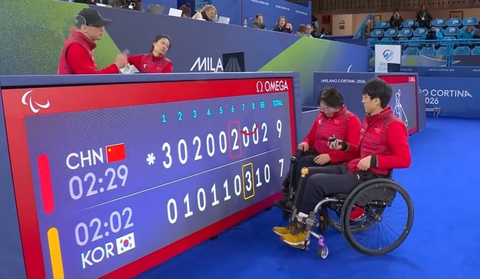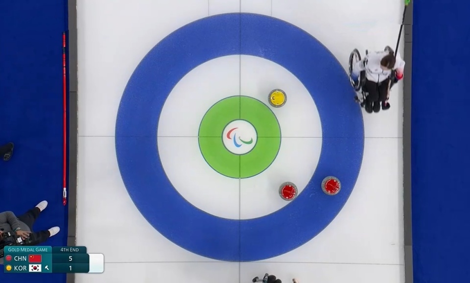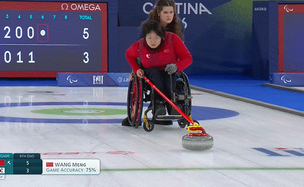在米兰冬残奥会轮椅冰壶混双金牌赛里,在常规局打成7-7平的情况下,依靠附加局后手给足韩国搭档白慧珍/李永锡压力,导致对手女伴出现大失误,王蒙甚至不用投最后一壶,中国队就已经直接拿2分!