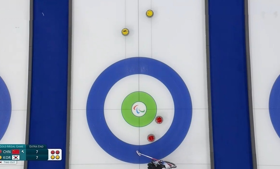 李永锡第二投出现失误,没能磕到红壶,但营中出现这样的局面,中国也叫了暂停...之后杨金桥尝试击打,但出现了溜壶失误...