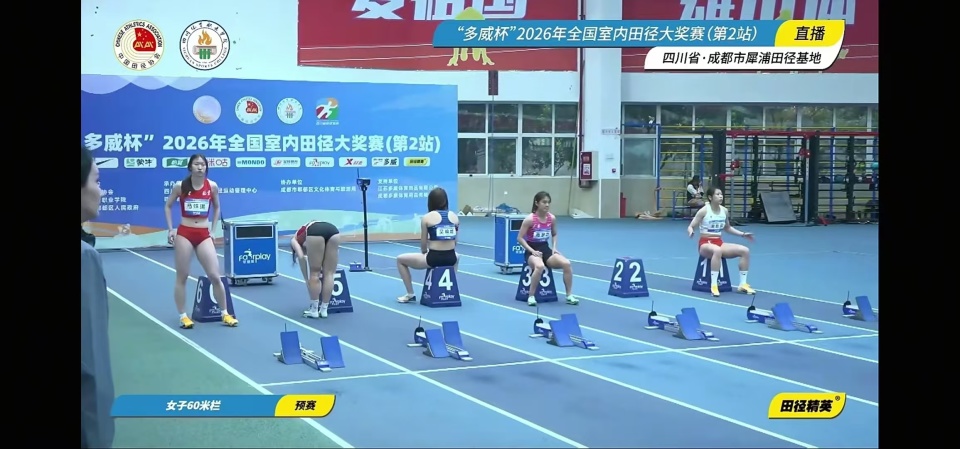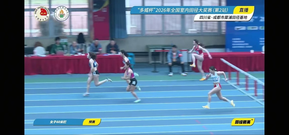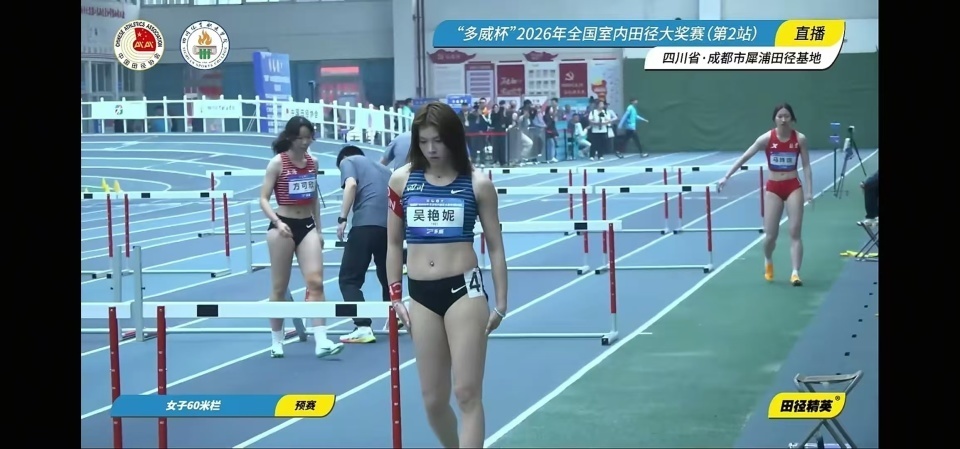 北京时间3月12日,2026年全国室内田径大奖赛(第2站)成都犀浦站女子60米栏预赛,吴艳妮在第5组出场以8秒46完成比赛排名预赛总成绩第五。莫佳蝶在第4组以8秒33完赛排名预赛总成绩第一。此前出现在报名名单里的刘景扬、夏思凝都没有参赛,连报名60米单项的林雨薇实际也没来成都参赛。