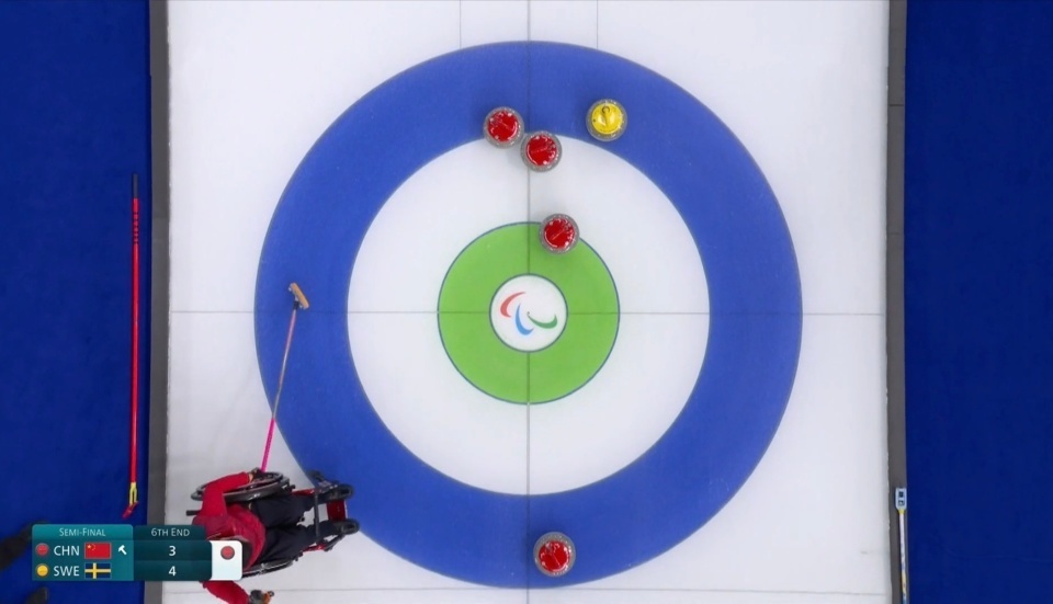 米兰冬残奥会轮椅冰壶混合团体半决赛落下帷幕:由四垒王海涛、三垒张明亮、二垒陈建新、一垒李娜娜和替补张强组成的中国队,以7-6力克老对手瑞典,顺利晋级决赛的同时,也朝着三连冠目标又近了一步。