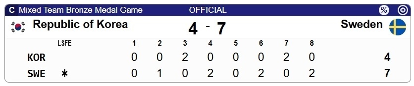在此前结束的铜牌赛比拼里,瑞典队以7-4战胜了韩国,如愿登上领奖台。