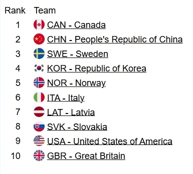 加、中、瑞、韩之外,排在第5-10名的分别是挪威、意大利、拉脱维亚、斯洛伐克、美国、英国。