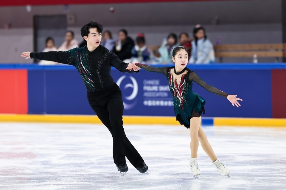 共有10对组合分成三个小组进行短节目比拼,张嘉轩/黄一航以68.05排在第一;刚刚参加完世青赛的郭蕊/张益文以62.59排在第二,陈雨萱/董胤博以60.73排在第三。