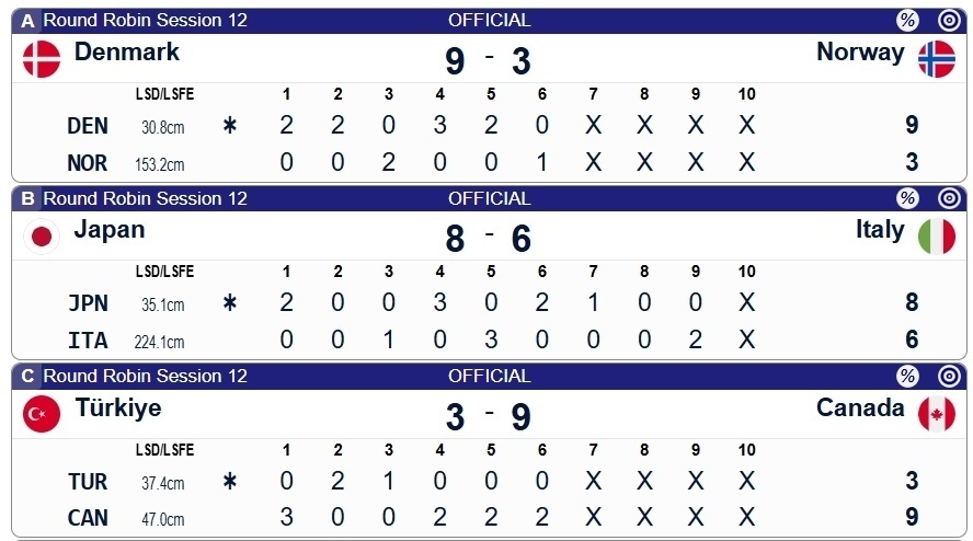 另外三场比拼里,丹麦9-3挪威、日本8-6意大利、土耳其3-9不敌加拿大。