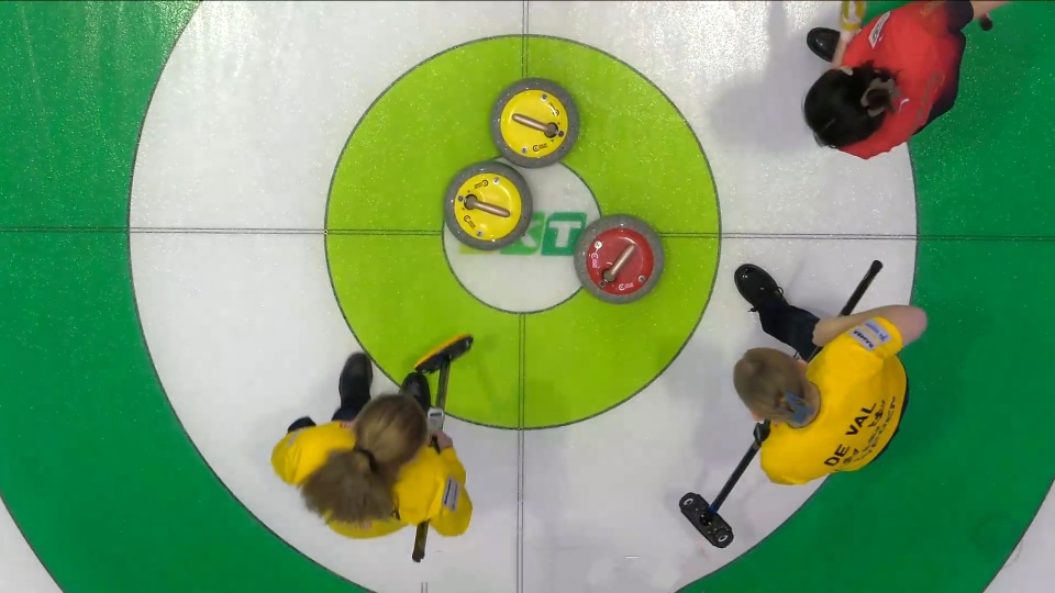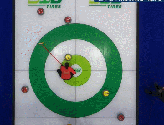第九局:已经4分领先的瑞典,直接入营抢占圆心,在3区占位红壶和5区的交手里,瑞典黄壶逐渐挤压出优势。
