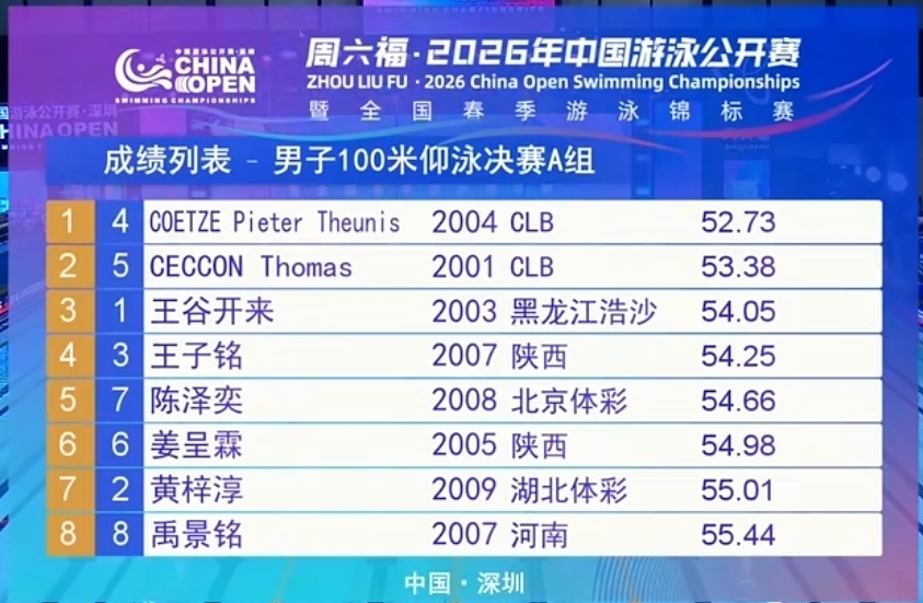 原本共有4位外协选手进入决赛,但预赛排在第四的南非名将科策为了保20分钟后开始的主项100仰,选择了退出。