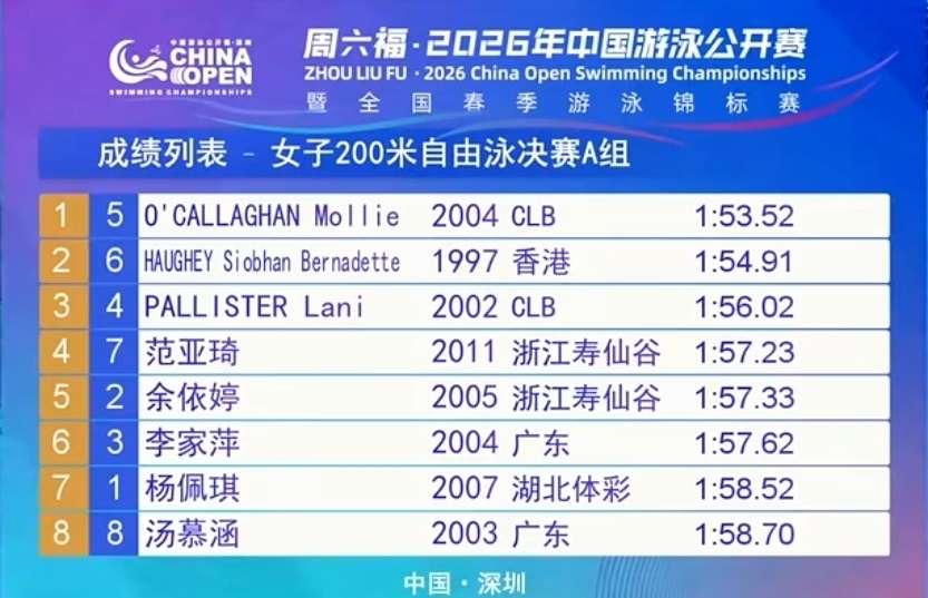 在刚刚结束的中国游泳公开赛第二比赛日晚场决赛里,外协选手们继续发挥出色,拿到了6项冠军: