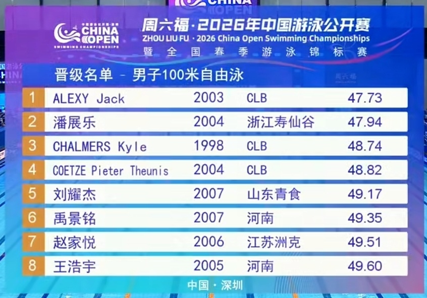 在刚刚结束的中国游泳公开赛第三比赛日上午场预赛里,外协选手们继续发挥出色,拿到了6项第一:
