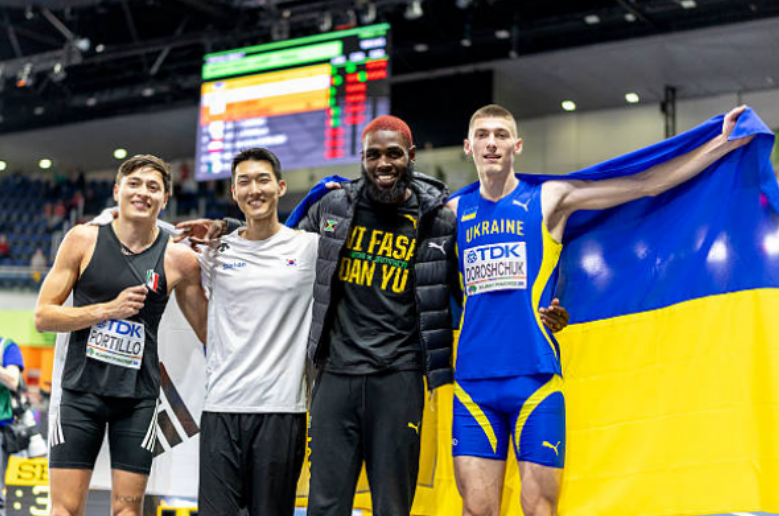 今天结束的男子跳高决赛,乌克兰名将多罗什丘克2米30夺冠,墨西哥的埃里克-波蒂略以2米30同样的成绩摘银,牙买加的理查兹和韩国的禹相赫以2米26并列获得铜牌。日本的信野智博也跳出2米26,他获得第四名。禹相赫本赛季状态不算好,今年此前他只跳出过一次2米30,但好歹这是这次室内世锦赛的亚洲第一枚奖牌。