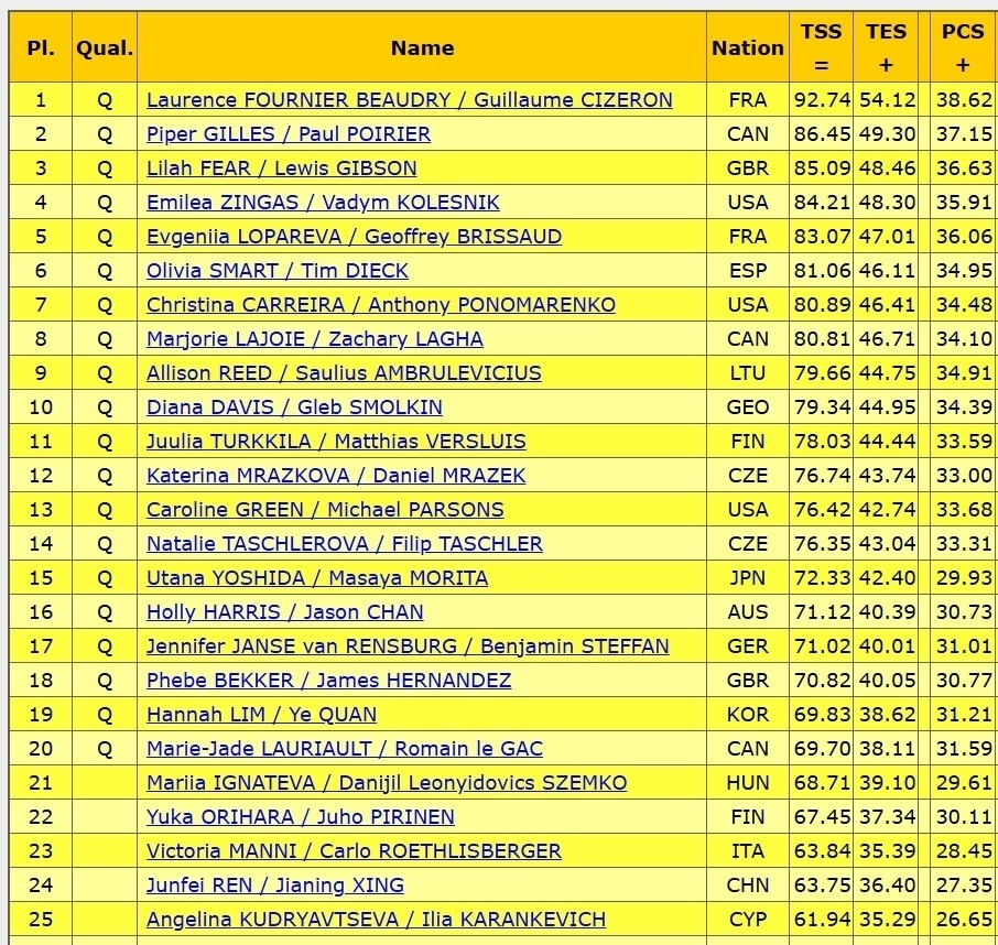 最后出场的法国二号罗帕列娃/布列松尽管使出浑身解数,但83.07分还是难以与以上四对抗衡。