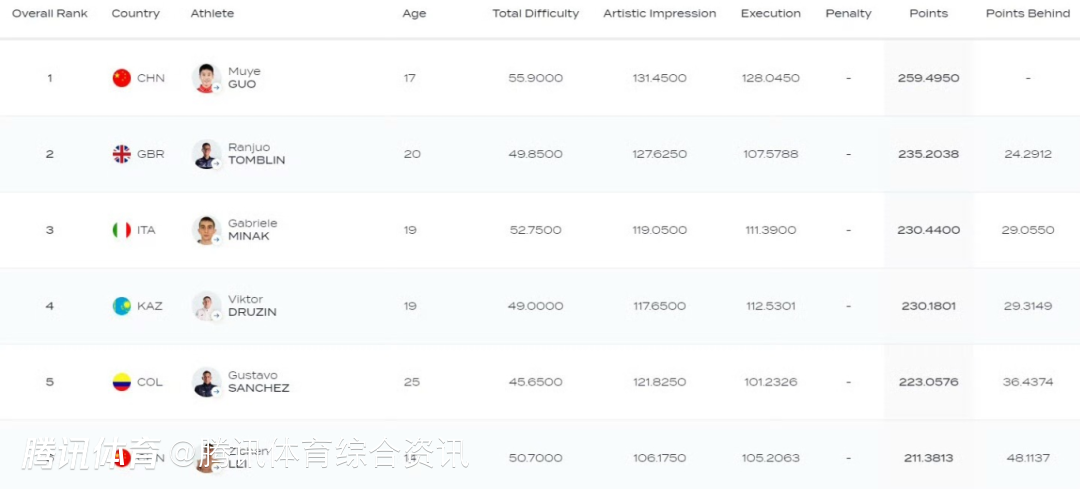 前不久的男子单人技术自选比赛中,中国选手郭牧也以245.4900分夺得冠军。