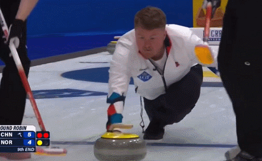 在2026男子冰壶世锦赛第七轮:中国队在与新人出战的挪威比拼里,前8局难解难分不相上下,第九局因为对手接连失误,拿到了4个大分,以9-4逼迫挪威提前握手认输,收获循环赛第二场胜利。