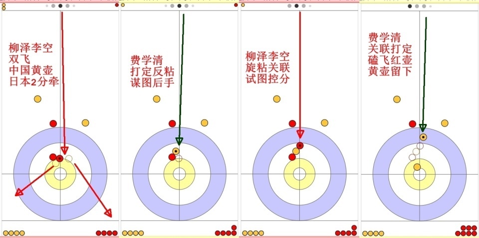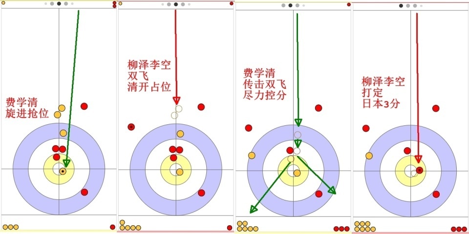 不过没想到居然是费学清第二投角度不够,导致日本红壶只被擦到,没能飞出大本营,日本偷到1分。