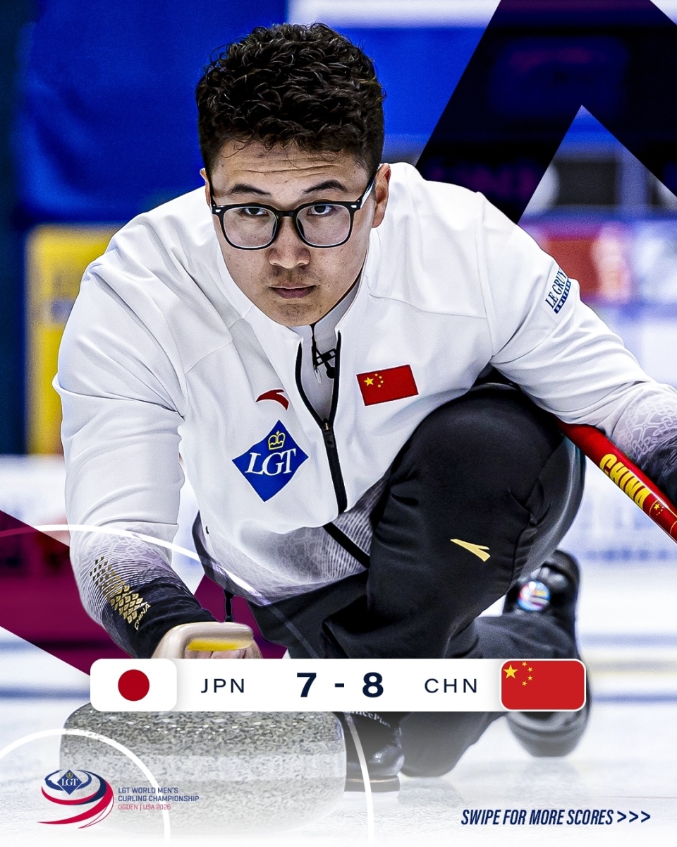 2026男子冰壶世锦赛结束了第八轮的比拼:面对落选赛时两次交手的日本山口刚史队,中国队状态有所回升,通过空局倒偶数后手等技战术,在第十局营造简单局面拼下1分,最终以8-7赢得胜利。