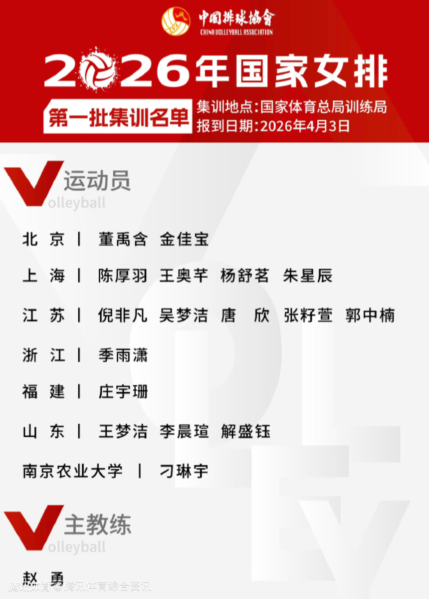 北京时间4月2日,排球运动管理中心公布了中国女排今年第一批集训名单,庄宇珊、吴梦洁领衔。