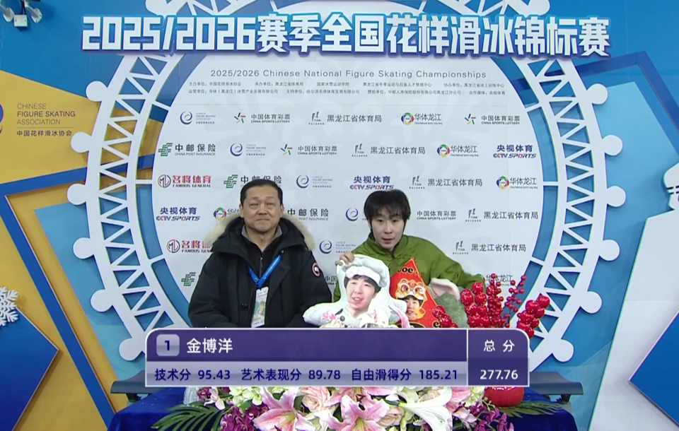2025全国花滑锦标赛在哈尔滨展开最后一个比赛日的角逐:率先进行的男单自由滑里,金博洋以277.76分第六次夺冠,同时还以选拔赛第一的成绩,拿到了米兰冬奥参赛资格!