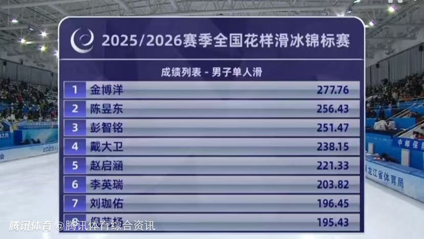 北京时间12月28日,全国花样滑冰锦标赛男单自由滑决赛,金博洋最后出场,得到185.21分,以总分277.76分夺冠,锁定米兰冬奥会参赛资格。陈昱东总分256.43分排名第二,彭智铭总分251.47分位居第三。