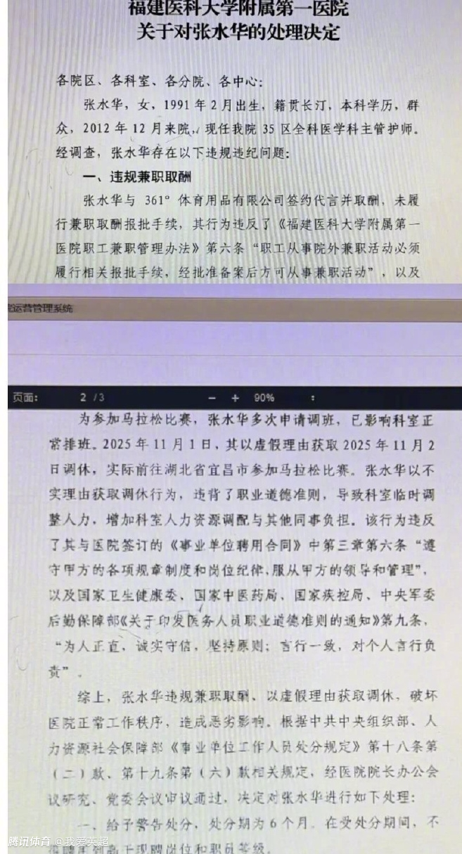 不仅如此,她还与某体育用品有限公司签约代言并取酬,未履行兼职取酬报批手续,她被所在医院警告处分6个月,并不能参与2025年的评优。
