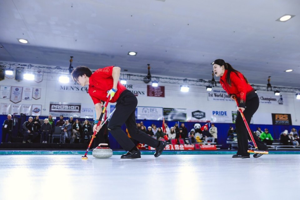 2026冰壶混双世锦资格赛在苏格兰-邓弗里斯展开第二阶段的比拼:在备受关注的中国台北VS英格兰这场席位资格赛里,周怡萱/刘伯闿鏖战8局,凭借上半场积累优势,以7-5战胜对手。