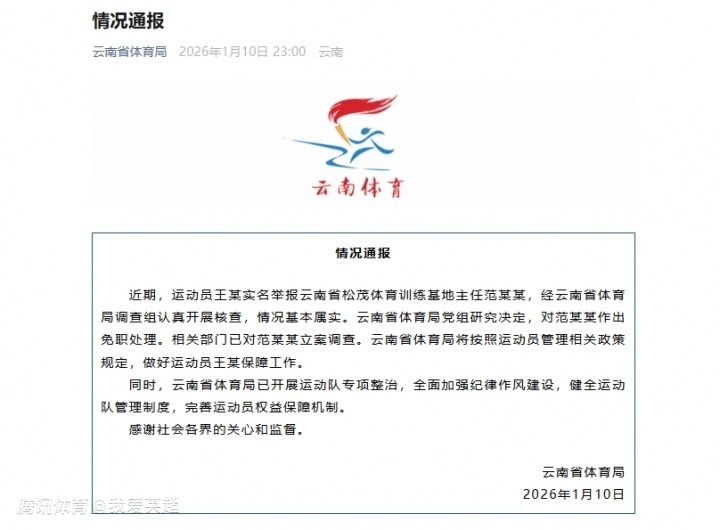 同时,云南省体育局感谢社会各界的关心和监督,并直言已开展运动队专项整治,全面加强纪律作风建设,健全运动队管理制度,完善运动员权益保障机制。