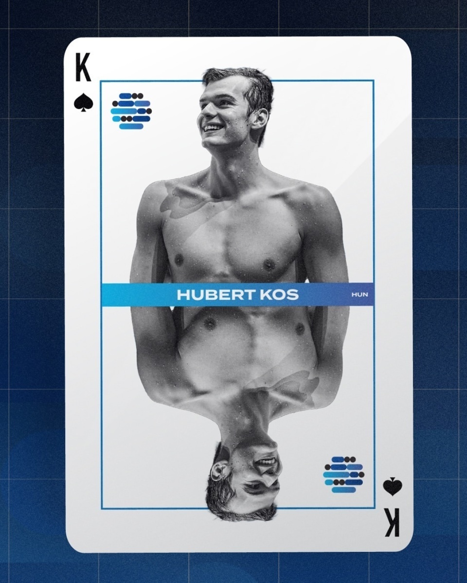 世界泳联在社交平台官方号上,没有经过任何预热,直接发布了年度最佳男子游泳运动员提名名单,为了一视同仁,所有提名选手胸像都正反组合,都放置在一张扑克牌-黑桃K上!