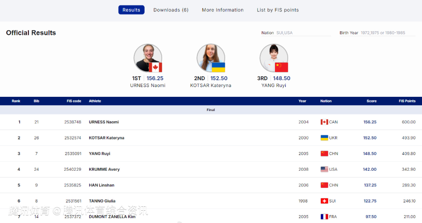 北京时间12月14日,自由式滑雪世界杯大跳台美国Steamboat站结束。在女子比赛中,中国选手杨如意以148.50分获得铜牌,韩林杉名列第五。加拿大厄尔内斯和乌克兰科特萨分获金银牌。