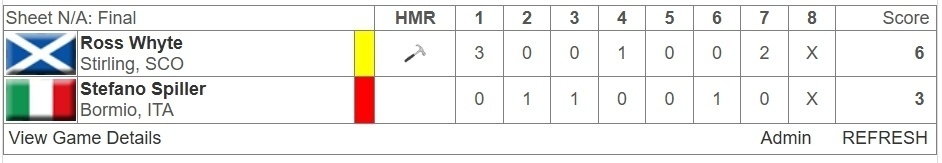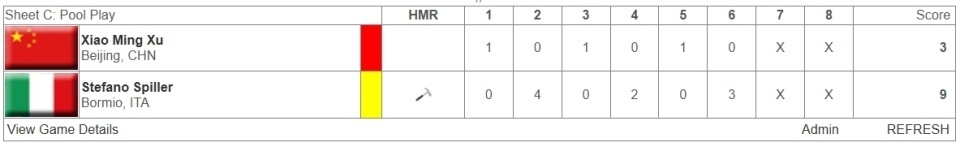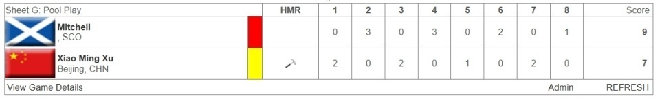 在与还没有世界排名、可以说籍籍无名的苏格兰-米切尔队比拼里,拿到后手的中国队直接拿到2分开局,不过第二局就被对手3分超过;第三和第四局重复了前两局的状况,上半场米切尔队以6-4领先。