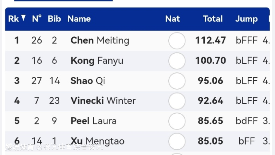 北京时间12月20日,国际雪联自由式滑雪空中技巧世界杯云顶站女子组预赛,陈梅婷、孔凡钰、邵琪、徐梦桃携手晋级(前12名晋级决赛),前三名均是中国选手:陈梅婷、孔凡钰、邵琪。此前的芬兰卢克站,陈梅婷以出色表现跻身女子空中技巧决赛,最终收获铜牌。