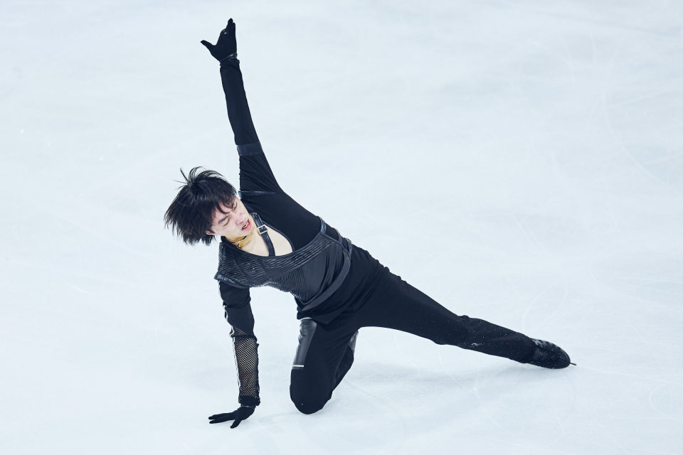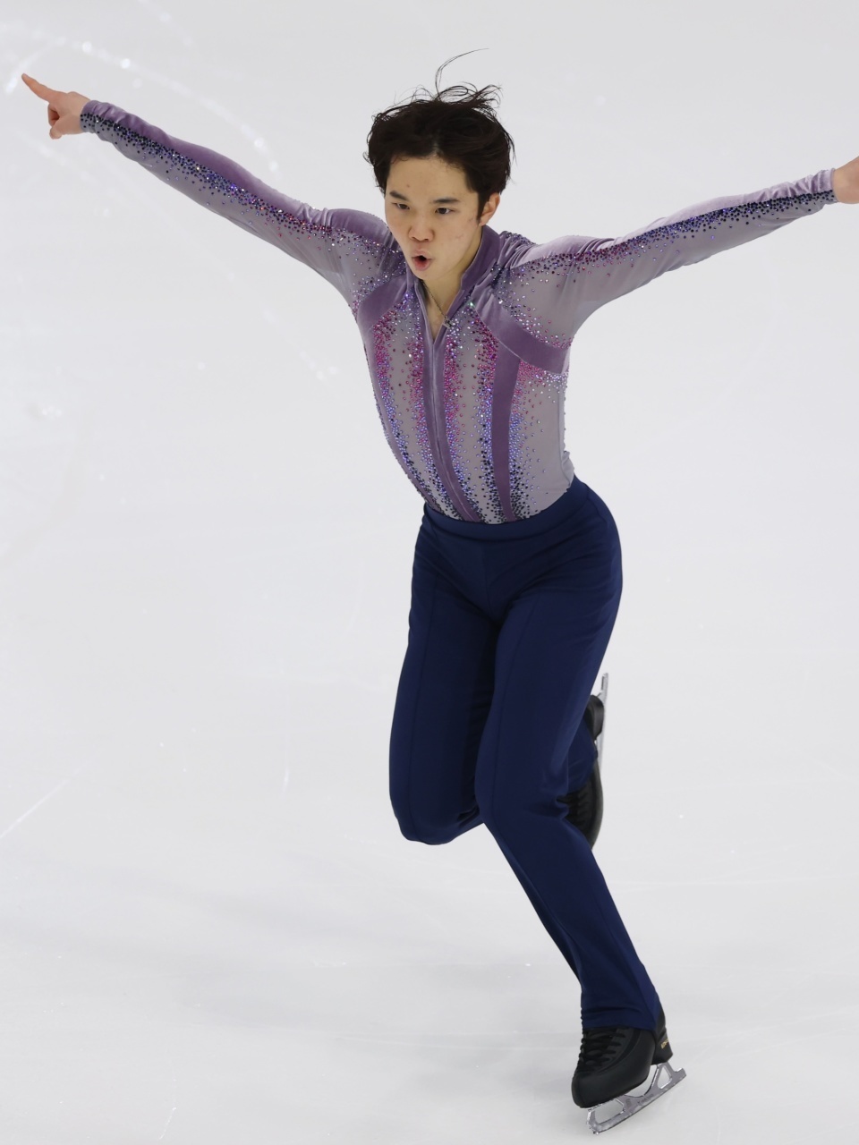 山本草太也发挥出高水平,他不仅跳跃构成,甚至连旋转和步伐的顺序也与友野一希完全一致;不过换足蹲踞旋转定级低了点,动作执行分也不如队友,但94.68(技术54.49/节目内容40.19)也刷新了赛季最好成绩。