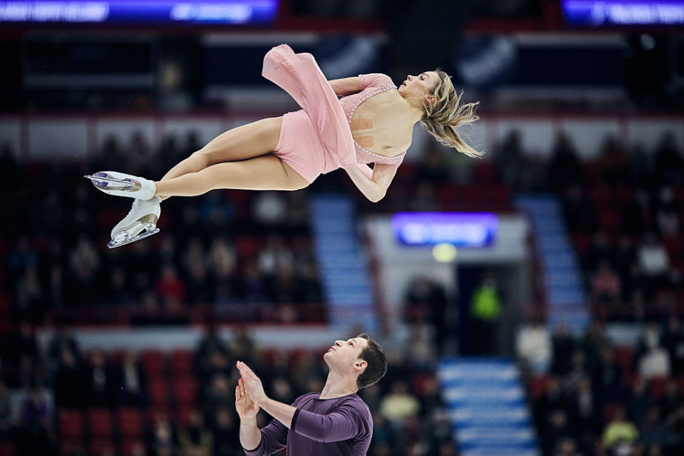 长冈柚奈/森口澄士以《生命之树》为伴奏,捻转三周高度可以更好,后外结环三周连续跳无懈可击,后外点冰三周的同步配合和滑出令人叹为观止。