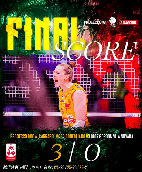 北京时间1月25日,女排意大利杯首场半决赛开打,卫冕冠军科内利亚诺3-0(25-23/25-20/25-21)完胜诺瓦拉,静候斯坎迪奇与基耶里的胜者。