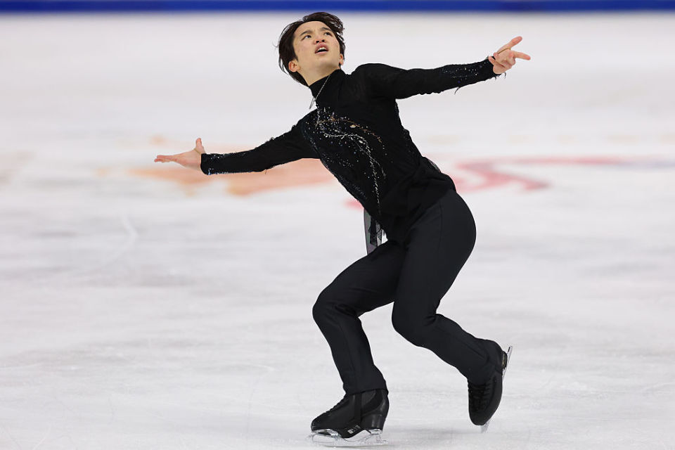 山本草太主要问题是开场萨霍夫跳做成三周,但包括外点四周和阿克塞尔三周个两次都成功完成,整体编排特别是滑行速度可圈可点,自由滑175.39(91.90/83.49),总分270.07没有超过车俊焕。