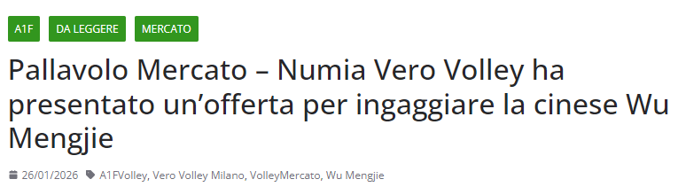 北京时间1月27日,据意大利媒体爆料,意甲米兰女排被传已经向吴梦洁提出报价。