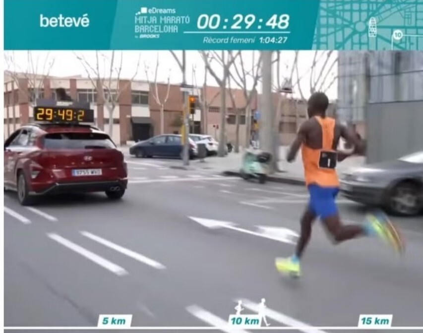 世界纪录认证委员会认为,基普利莫在去年巴塞罗那半马惊为天人的56分42秒(比原纪录提升48秒),是使用了违规辅助手段下完成的,最主要的是他距离领跑车的距离太近,利用了汽车尾流来减少空气阻力。